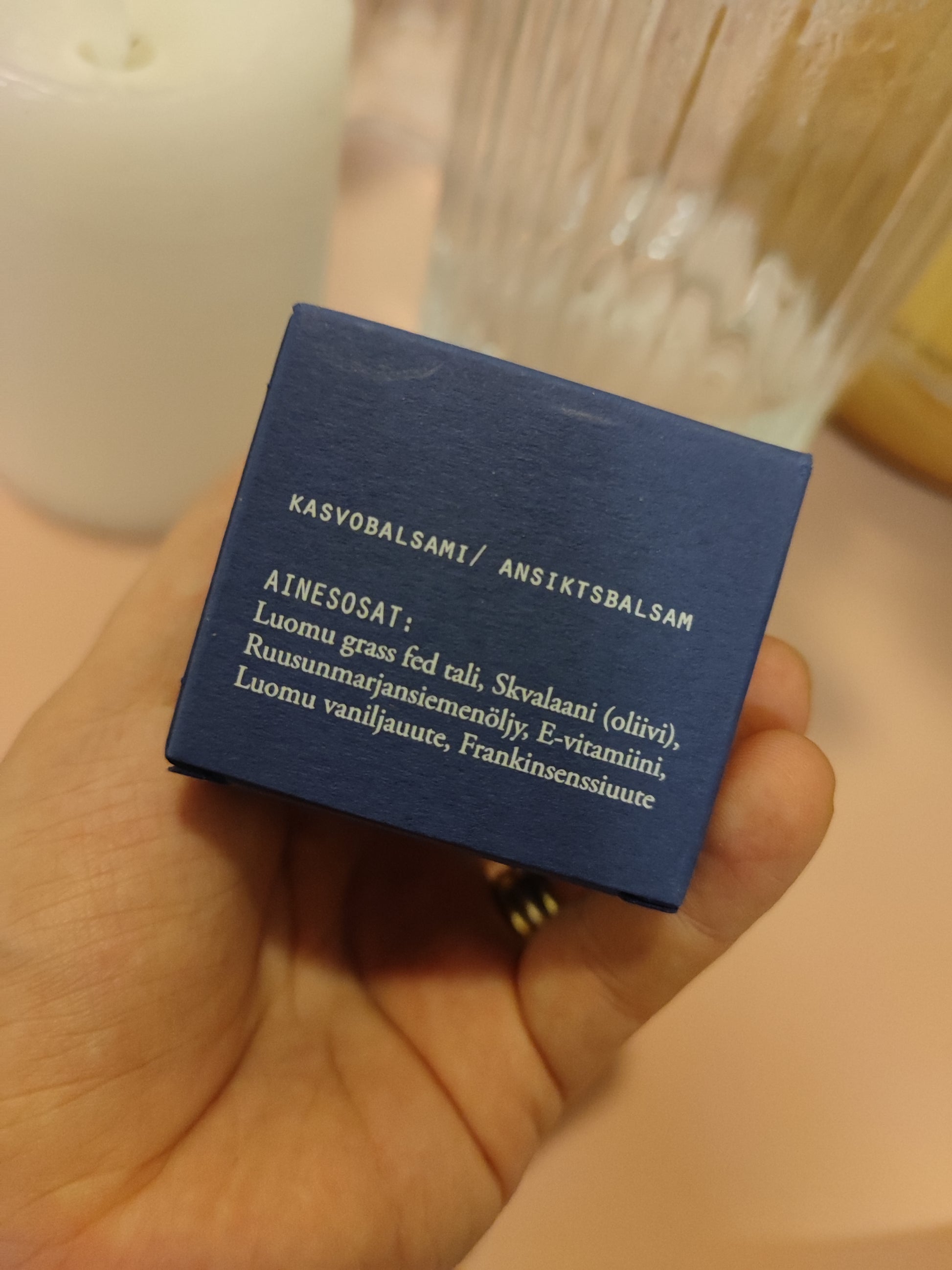 Suosittelemme käyttämään alla kasvovettä. Kasvovesi auttaa balsamia imeytymään paremmin.