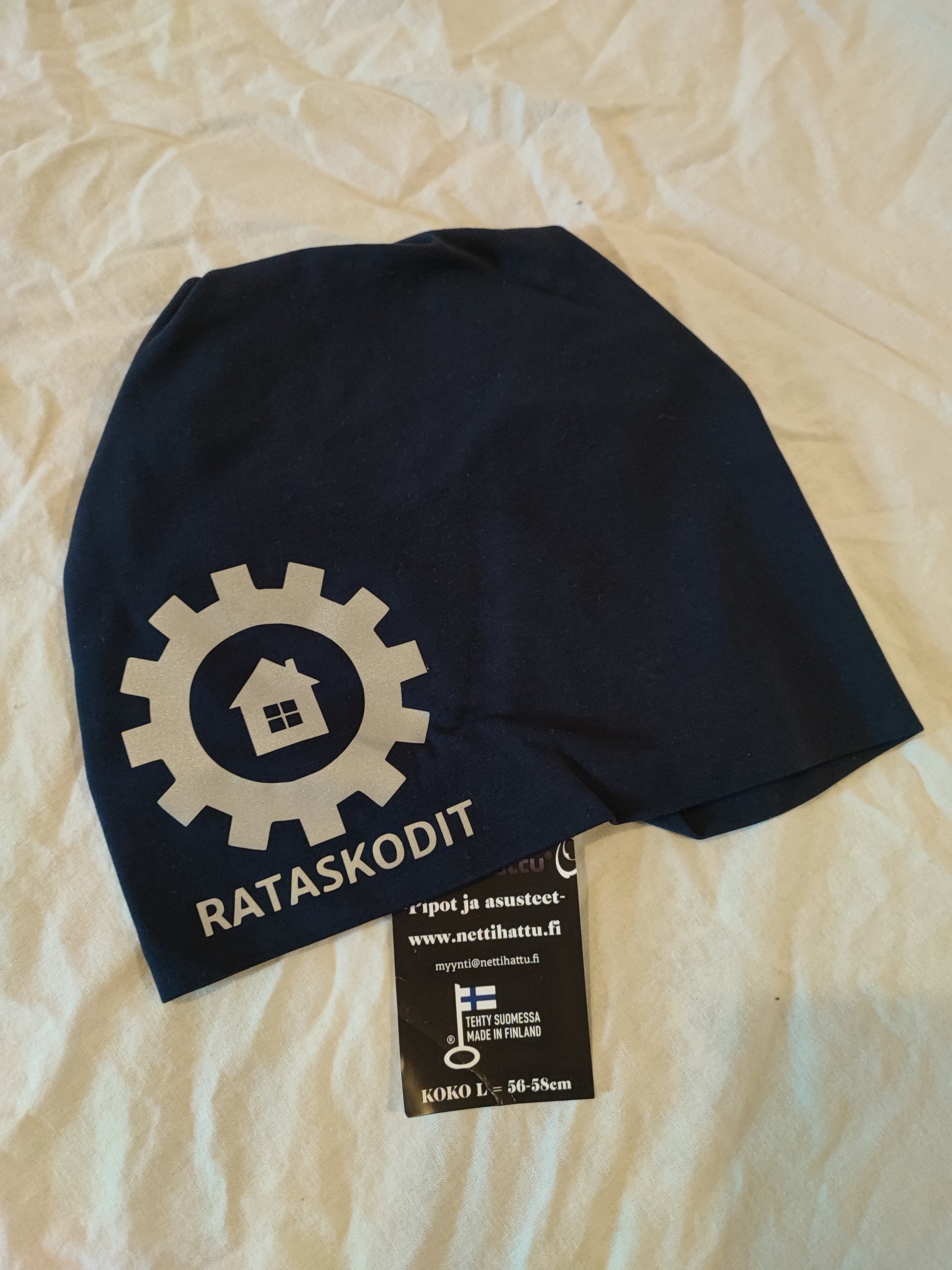 Rataskotien heijastavalla logolla oleva trikoopipo. Laadukas. Nettihatun valmistama.